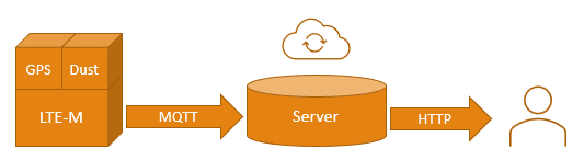 計測したデータはLTE-Mを利用してサーバーにアップロードし、GPSデータと合わせた花粉情報のマッピングを行います。